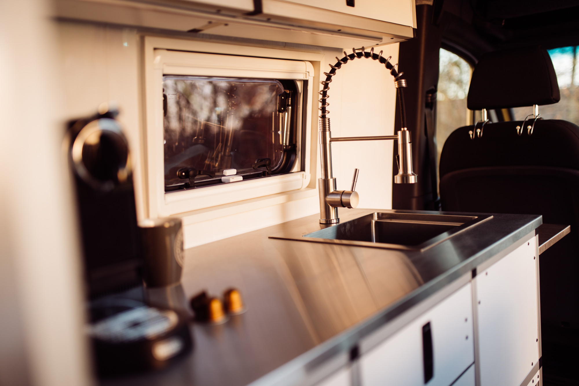 Umgeben von komfortablen Sitzgelegenheiten und cleverem Stauraum bietet dieses mobile Zuhause nicht nur reichlich Komfort für unterwegs, sondern auch eine einzigartige Möglichkeit, Musik in bester Qualität während der Reise zu genießen.