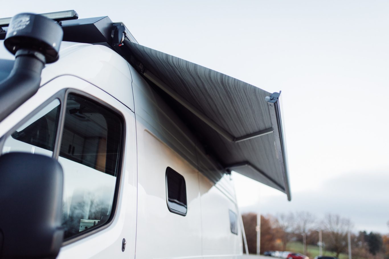 Eine großzügige 270° Markise spendet Schatten an sonnigen Tagen und schützt zuverlässig bei Regen. Sie schafft einen geschützten Außenbereich rund ums Fahrzeug – ideal zum Kochen, Entspannen oder geselligen Beisammensein.