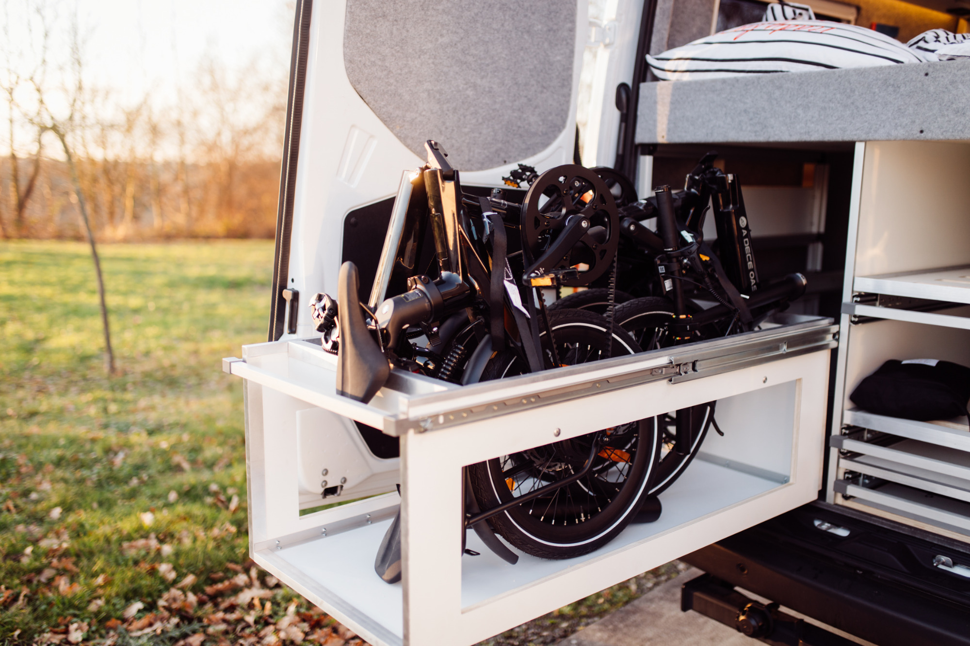Im Heck sorgt ein Schwerlastauszug für den sicheren Transport von bis zu 4 Fahrrädern. Zusätzlich ist an der Hecktür ein BikeLift-System montiert – damit lassen sich zwei weitere Bikes mühelos transportieren und bequem be- und entladen.